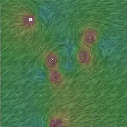 The length of the vectors (or the strength of the field) is usually coded in color; alternatively, animation can be used.[2][1]