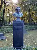 The organisers were faced with the problem that despite designating the cemetery to be the artists' necropolis, historically the Tikhvin had primarily been the burial ground of statesmen, military leaders, scientists, and composers.[4] There were relatively few graves of writers, who had tended to prefer the Smolensky Cemetery; or artists, who had traditionally chosen the Nikolskoe or Novodevichy Cemetery.[4] This necessitated the transfer of a large number of burials and monuments, which took place in two main periods, from 1936 to 1941 and from 1948 to 1952.[4] There were also several burials of prominent Soviet citizens, as the cemetery gained the status of an urban pantheon.[2] Those buried here included the scientist Sergey Lebedev in 1934, artist Mikhail Avilov in 1954, and actor Nikolay Cherkasov in 1966. In 1972 the remains of the composer Alexander Glazunov were transferred from Paris.[2] In 1968 Fyodor Dostoevsky's wife Anna Dostoevskaya was reburied next to her husband, while theatre director Georgy Tovstonogov was interred in the cemetery in 1989. So far Tovstonogov's has been the last burial to take place in the cemetery.[2][4]