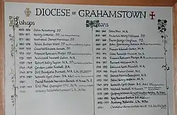 This is a list of deans of Grahamstown. The dean is the incumbent of Grahamstown Cathedral, Eastern Cape Province, South Africa. In addition, the dean has other duties and roles set out in the "Deed of Constitution and Statutes of the Chapter of the Cathedral of St Michael and St George, Grahamstown" which is an appendix to the acts of the Diocese of Grahamstown. The 20th and current dean is Andrew John Hunter, who was appointed in 2008.[1]