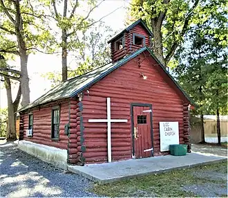 Log Cabin Church is a historic non-denominational church at 413 Progress Road in the hamlet of Progress in the town of Mayfield, Fulton County, New York. It was built in 1937 and is a 26 feet deep by 18 feet wide log structure constructed of white poplar logs laid horizontally. Also on the property is a privy[2] and a parish activities hall.