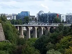 The Passerelle, also known as the viaduct or old bridge, overlooking the Pétrusse river valley. It opened in 1861.