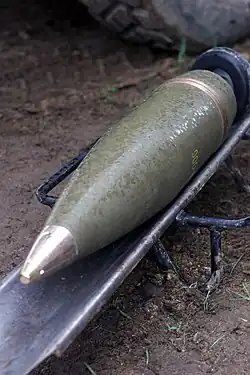 ![]() M107 projectiles, fitted with fuzes. | |