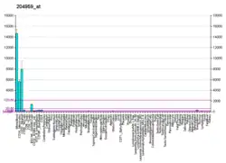- ^ Briggs RC, Briggs JA, Ozer J, Sealy L, Dworkin LL, Kingsmore SF, Seldin MF, Kaur GP, Athwal RS, Dessypris EN (April 1994). "The human myeloid cell nuclear differentiation antigen gene is one of at least two related interferon-inducible genes located on chromosome 1q that are expressed specifically in hematopoietic cells". Blood. 83 (8): 2153–62. doi:10.1182/blood.V83.8.2153.2153. PMID 7512843.