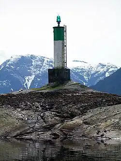 The entrance is large enough to allow marine traffic through. The narrow passage is defined by Malibu Isle and a System B type Lateral navigation beacon on the Jervis Inlet side and Malibu and the mainland on the Princess Louisa Inlet side.