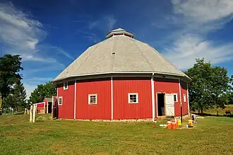 Maria and Franklin Wiltrout Polygonal Barn, also known as the Alfred Barn, is a historic 14-sided barn located in Fairfield Township, DeKalb County, Indiana. Built in 1910, the structure is a two-story, wood-frame structure measuring 60 feet in width. It is topped by a two-pitch gambrel type roof with a 14-sided cupola. It is one of three 14-sided barns left in Indiana.[2]: 2