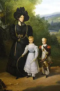 Madame de Gontaut became lady-in-waiting to Caroline, duchesse de Berry, and, on the birth of Caroline's first child, the princess Louise (afterwards duchess of Parma), governess to the children of France. Next year the birth of Henri, duc de Bordeaux (afterwards known as the comte de Chambord), added to her charge the heir of the Bourbons. She remained faithful to his cause all her life. Her husband died in 1822, and in 1827 she was created duchesse de Gontaut. [1]