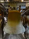 Marienstiftskirche has a peal of five bells. The two smallest are located in the flèche. The larger three hang in the Stadtturm, which was part of the town's fortifications. The bells are located on the bell-floor under the floor for the sentries, who were also responsible for ringing the bells. All of the bells are Medieval, except for the Baroque Eleven o'clock bell.[37] The largest bell is cast with the deep curve typical of the Medieval period; the Eleven o'clock bell appears larger due to the much shallower curve which is typical of the Baroque, but it is actually smaller.