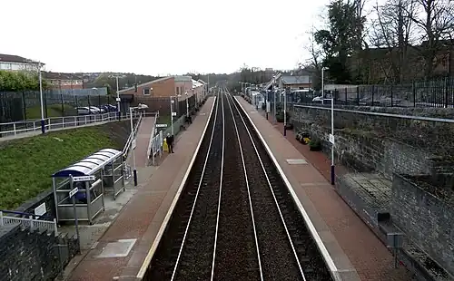 Maryhill railway station is a railway station serving the Maryhill area of Glasgow, Scotland. It is located on the Maryhill Line, 4+3⁄4 miles (7.6 km) northwest of Glasgow Queen Street, a short distance east of Maryhill Viaduct and Maryhill Park Junction. It has two side platforms. Services are provided by ScotRail on behalf of Strathclyde Partnership for Transport.