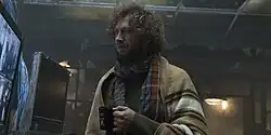 • David "Micro" Lieberman is portrayed by Ebon Moss-Bachrach in the first season of The Punisher (2017), set in the Marvel Cinematic Universe.[5] This version is a former NSA analyst and family man, who was framed for whistleblowing on clandestine black-ops activities in the Middle East by Frank Castle's Special Ops outfit during the War on Terror, thus having damning evidence on the CIA, including on Frank himself, and his two corrupt superiors, US Marine Colonel Ray Schoonover and CIA Director William Rawlins, which led to Rawlins ordering Schoonover to apprehend and assassinate him, which failed, leading Micro to go into hiding, holding up in an abandoned factory warehouse and utilizing an expansive surveillance system and setup to discover who was targeting him as well as keeping tabs on his family.[34] Micro and Frank's partnership in the show is far more strained and vitriolic than usual depictions, with Frank outright restraining and psychologically torturing Micro for answers, suspecting him as a new enemy, only to be outsmarted by the latter, who explains he sought out an alliance with the Punisher in hopes of exonerating himself from being a legally-dead fugitive so that he could return to his family, likening himself as "a guidance system" to [Punisher]'s "missile", hoping to serve as a mission control asset to assist and coordinate, thus improving the Punisher's effectiveness in his outings and missions to target and thwart those who wronged them both, as well as using information and files gleaned from Federal databases on Frank's actions on behalf of what became Project Cerberus, that he will spread to the internet and media at large as leverage if the latter continues to harm him, to which Frank in turn consistently visits Micro's estranged wife Sarah and his two children Leo and Zach to ensure Micro has no ulterior motives to betray him, as well as to protect them from harm by their shared enemies. Micro also utilizes a van as transport, although not heavily weaponized or outfitted like the Battle Van in the comics, rather using low-tech like drones and set-up cameras and other communications equipment. Eventually, after finally breaking down all involved in Project Cerberus, killing Rawlins and crippling former comrade and friend-turned-enemy Billy Russo, Frank and Micro are able to successfully emancipate him, allowing him to reunite with Sarah, Leo, and Zack and retire, while Frank embarks alone to continue seeking purpose beyond his vigilante activities.