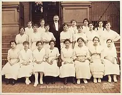 He established a music school, often referred to as conservatory, in 1910. Its first recitals took place in early 1911 at the Hull House.[11] The school changed locations as he moved to different cities. For a while, it had chapters in Brooklyn, Newark, and Elizabeth.[6] According to Petrauskas, he was dissatisfied that many students were non-Lithuanians (Jews, Russians, etc.) and therefore decided to move from New York to a larger Lithuanian community in South Boston.[1] The number of students varied from 30 to 130 in a given year. Most students took classes more as a hobby and did not graduate with a degree.[11] In total, 37 people graduated as choir masters, eight as choir masters and conductors, and six as music teachers.[1] The students included Antanas Sodeika, Rojus Mizara, Jonas Būtėnas, Marijona Rakauskaitė.[5] Between 1917 and 1920, the school published 44 volumes of Kanklės with many compositions by Petrauskas.[11] The school closed in 1924.[1]