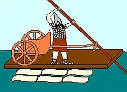 Assyrians using inflated sheep skins to transport chariots across the Euphrates (or Tigris).[16]