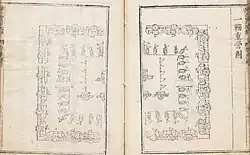 Qi Jiguang deployed his soldiers in a 12-man 'mandarin duck' formation, which consisted of four pikemen, two men carrying daos with a great and small shield, two 'wolf brush' wielders, a rearguard officer, and a porter.[72] This system bears some resemblance to European systems (pike and shot) developing in England where formations of arquebusiers would be protected by a group of pikemen.[73] Volley fire was also used.[74]