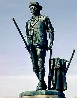 ... they recommended to the militia to form themselves into companies of minute-men, who should be equipped and prepared to march at the shortest notice. These minute-men were to consist of one quarter of the whole militia, to be enlisted under the direction of the field-officers, and divide into companies, consisting of at least fifty men each. The privates were to choose their captains and subalterns, and these officers were to form the companies into battalions, and chose the field-officers to command the same. Hence the minute-men became a body distinct from the rest of the militia, and, by being more devoted to military exercises, they acquired skill in the use of arms. More attention than formerly was likewise bestowed on the training and drilling of militia.[21]