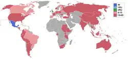 Contestants from Italy and Suriname withdrew before the pageant started. While, contestants from Guam, Guatemala, Kenya, Sudan, Ukraine withdrew 10 days after the pageant started, only 66 contestants continued at the competition. A day before the grand final, Costa Rica and Nigeria confirmed not arrived at Chengdu, China due both of them had visa problems, marking the number of contestants decreased to 64. Sudan finally arrived at Chengdu to attend the preliminary judging, rehearsals and the grand final with others contestants. The number of contestants finally increased to 65.[3]