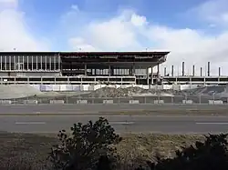 A demolition contract was awarded to Delsan on September 16, 2014, which proceeded with the demolition of the terminal building and surrounding parking structures.[35] Demolition costs had been estimated up to $15 million and were expected to take less than a year to complete.[36] Demolition of the terminal building began in mid-November 2014 and was completed in August 2016. The adjacent abandoned Chateau Aeroport hotel, and its connecting terminal skyway, were left standing, albeit in a deteriorating state.