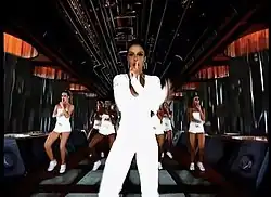 Aaliyah wore a custom-made Chanel jumpsuit created by designer Dapper Dan in the video. Aaliyah's stylist Derek Lee stated: "Aaliyah looked so good in a catsuit and we wanted it to be designer. He took the idea and he ran with it. It's pretty amazing".[80] Meanwhile, Aaliyah's backup dancers wore faux Chanel buckle belts purchased on Canal Street, "where they would sell really random knockoff things". Their shoes were regular sneakers Lee made into Chanel ones to coordinate with their outfits.[80] According to Emily Tan from The Boombox Aaliyah "lives up to the title of her 'More Than a Woman' visual by ditching oversized menswear and embracing a sleek look", when discussing her Chanel catsuit.[81] Teen Vogue writer Shama Nasinde included her white catsuit look on their "Aaliyah’s Style Evolution: See Her Most Timeless and Influential Looks" list.[82] While comparing Aaliyah's similar jumpsuit look from a live performance, Héloïse Salessy from Vogue France said "it was really the white model she wore in her music video for "More Than A Woman" released in 2001 that made her mark on the fashion scene".[83]