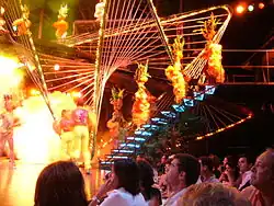 During the middle years of the 19th century, a young American musician Louis Moreau Gottschalk (1829–1869) came to Cuba. Gottschalk's father was a Jewish businessman from London, and his mother a white creole of French Catholic background.[11] Gottschalk was brought up mostly by his black grandmother and nurse Sally, both from Saint-Domingue. He was a piano prodigy who had listened to the music and seen the dancing in Congo Square, New Orleans from childhood. His period in Cuba lasted from 1853 to 1862, with visits to Puerto Rico and Martinique squeezed in. He composed many creolized pieces, such as the habanera Bamboula, Op. 2 (Danse de negres) (1845), the title referring to a bass Afro-Caribbean drum; El cocoye (1853), a version of a rhythmic melody already present in Cuba; the contradanza Ojos criollos (Danse cubaine) (1859) and a version of María de la O, which refers to a Cuban mulatto singer. These numbers made use of typical Cuban rhythmic patterns. At one of his farewell concerts he played his Adiós a Cuba to huge applause and shouts of 'bravo!' Unfortunately, his score for the work has not survived.[12] In February 1860 Gottschalk produced a huge work, La nuit des tropiques, in Havana. The work used about 250 musicians and a choir of 200 singers plus a tumba francesa group from Santiago de Cuba. He produced another huge concert the following year, with new material. These shows probably dwarfed anything seen in the island before or since, and no doubt were unforgettable for those who attended.[13]p147