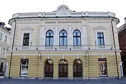 In 1701, Johann Berthold von Höffer (1667–1718), a nobleman and amateur composer from Ljubljana, founded the Academia Philharmonicorum Labacensis based on Italian models.[2] and the Ljubljana branch of the Roman Academy of Arcadia was founded a few years later in 1709. Apart from Höffer, the Cathedral provost Michael Omerza was also noted for his oratorios. The first major Slovenian opera was performed in 1732, Il Tamerlano by abbate Giuseppe Clemente de Bonomi, maestro di Capella, in the palace of the Carniolan vice-regent, the duke Francesco Antonio Sigifrid Della Torre e Valassina.[3][4][5][6][7][8]