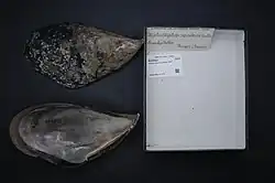 - ^ a b c Bieler R, Bouchet P, Gofas S, Marshall B, Rosenberg G, La Perna R, Neubauer TA, Sartori AF, Schneider S, Vos C, ter Poorten JJ, Taylor J, Dijkstra H, Finn J, Bank R, Neubert E, Moretzsohn F, Faber M, Houart R, Picton B, Garcia-Alvarez O, eds. (2022). "Mytilus unguiculatus Valenciennes, 1858". MolluscaBase. World Register of Marine Species. Retrieved 18 January 2022.