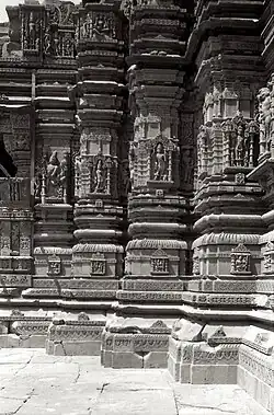 Although of the same date as some of the buildings at Khajuraho, architecturally speaking, the temple spire belongs to a class known as bhūmija, or 'earth born,' a mode of temple construction that originated in the Mālwa region.[2] Other temples of this type are found at Nemawar and Un (Khargone district).