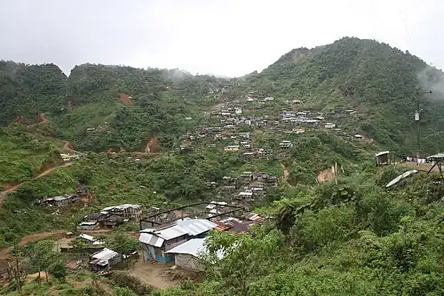 Overview of Nambija. The area affected by the landslide is in the top left.