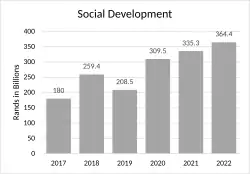 In 2021/22 the Western Cape Provincial government received a total budget of just under R 72.35 billion with 74% (R54.445 billion) of that in the form of "equitable shares" from the national government budget, 18% (R13.53 billion) in the form of "conditional grants" from national government, 4% in "financing", 3% from the provinces own receipts, and 1% from the provincial revenue fund in the form of tax receipts.[ 15] In 2019 the 17.1% of all South African taxpayers were located in the Western Cape; the province contributed 16.9% of the country's total taxable income thereby contributing to just under R 269.58 billion to the fiscus.[ 16]