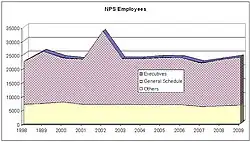 The NPS employs about 20,000 people in 433 units covering over 85 million acres (0.34 million km2) in all 50 states, the District of Columbia, and U.S. territories.[1][6][4] In 2019, the service had more than 279,000 volunteers.[1] The agency is charged with preserving the ecological and historical integrity of the places entrusted to its management and with making them available for public use and enjoyment.