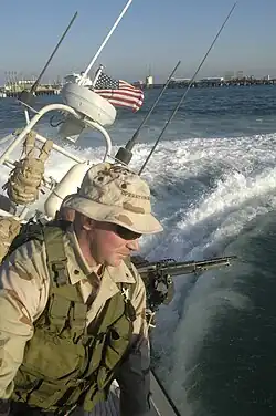 NCW involves the employment of mobile sensor systems (e.g., radar, sonar, electronic warfare support (ES), and visual) and small, armed patrol craft to provide a surveillance and interdiction capability against waterborne threats in the inshore/coastal environment. NCW forces are linked with other naval surveillance assets and landside security and host nation (HN) forces to promote a seamless exchange of information and ensure deconfliction of friendly forces. The NCW organic command, control, communications, computers, and intelligence (C4I) capability provides a robust capability to coordinate surveillance and interdiction operations and develop a detailed near-real-time common tactical picture (CTP) of the coastal battlespace. NCW operations also support maritime pre-positioning force (MPF) and assault follow-on echelon (AFOE) offload operations, and submarine security missions.[3]