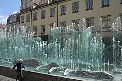 More recently, in the 1990s, the building underwent extensive renovation, and the gastronomic function was restored in the basement, now the location of the Spiż Brewery. A glass fountain was added in front of the western façade, designed by Alojzy Gryt, and four flagpoles were erected.
