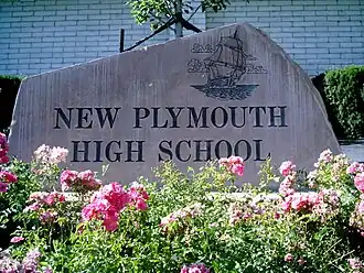 The previous school was built in 1938, and was always used as a junior and senior high school. During the interim while the new school was being constructed, students held classes at local churches and government buildings, such as the New Plymouth Congregational Church and the New Plymouth Public Library.[3]