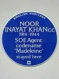 - ^ "Spy becomes first woman of south Asian descent to get blue plaque in London | Second world war". The Guardian. 27 August 2020. Retrieved 28 August 2020.