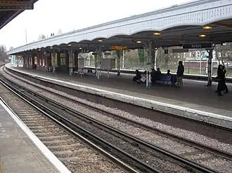 Norbury railway station is a National Rail station in the Norbury area of the London Borough of Croydon in south London. It is on the Brighton Main Line, 7 miles 36 chains (12.0 km) down the line from London Victoria.[3] The station is operated by Southern, which also provides all train services. It is in Travelcard Zone 3 and ticket barriers are in operation at this station.
