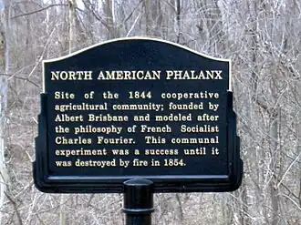 The North American Phalanx was the second most publicized association of the 1840s Fourierist movement, surpassed in general interest only by Brook Farm in West Roxbury, Massachusetts.[3]
