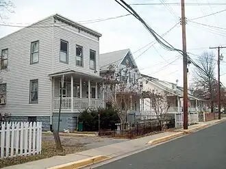 Other African-American families soon moved to the neighborhood, including the Plummer, Wallace, and Johnson families. They built two-story front-gable frame houses, as well as free-standing rowhouses. In 1898, the City and Suburban Railway was completed through Randallstown. By 1904 that name had been replaced by Brentwood. In the early 1900s, development was faster than in the southern areas also platted by Bartlett. A school and a church were built in 1904, and the Brentwood Colored Citizens Association was formed in 1907. The association helped acquire volunteers for a fire company, fire-fighting equipment, a community hall, and electric lights. After Bartlett's neighboring development was incorporated as the town of Brentwood in 1922, Jeremiah Hawkins pushed for the incorporation of North Brentwood.[9]
