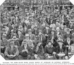 The South Island team featured 2 Wellington players (F Moses and Hector Mallinder) for the first time in its history, rendering it a South Island team in name only. G Moyes, chosen at lock from Waikato was unavailable as he was feeling unwell so his place was taken by Fred James of the City side and he played well scoring 2 tries.[20] Veteran Arthur Kay played for the North Island in the centre position. He was in his 13th season of senior rugby league having debuted for Ponsonby in 1933.[21] The crowd was estimated at between 15 and 20,000 which was the largest seen at the ground for many years.[22]
