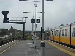 Platform 4 is mainly used for southbound trains terminating at Gatwick Airport. The platform serves both fast trains and stopping services, and is also mainly used by Thameslink.