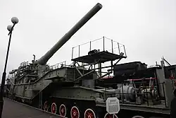 Between the wars, Soviet forces placed four four-gun batteries around the Baltic Sea, two four-gun batteries in Sevastopol and two six-gun batteries in Vladivostok. Some guns from the Imperator Aleksandr III were later captured by the Germans in World War II and used in the Batterie Mirus in Guernsey during the German occupation of the Channel Islands. During the Second World War, the Soviet Separate Coastal Army maintained four of the guns in the Maxim Gorky Fortresses in Crimea. When an advancing German Army laid siege to Sevastopol, the coastal batteries were used extensively in the defense of the city. Both batteries were eventually knocked out of action.[5]