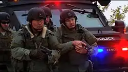 In the 1970s, the OCPD began the Alcohol Safety Action Project (ASAP) designed to reduce drunk driving.[4] The department also created a Selective Enforcement Unit, designed to reduce crime in problematic areas.[4] The OCPD also added a police helicopter and Tactical Team (SWAT).[4] In 1972, Shirley (Cox) Conner, Sherry (Hamman) Garcia, Norma Jean (Bowerman) Adams, Julie (Black) Smith, and Gladys (Burns) Loflin became the first female police officers to be employed and assigned to uniformed patrol duties.[9] In the fall of 1975, OCPD officers went on a work slowdown to protest low wages.[4] On October 24, nearly all of the OCPD's 600 officers walked into City Hall and placed their badges on the city council's conference table.[4] Over the next three days, the Oklahoma County Sheriff Office and the Oklahoma Highway Patrol provided police service to the city.[4] Finally, on October 27, a settlement was reached, which resulted in a pay increase and added benefits for officers.[4]