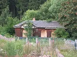 This halt was located on Czechoslovak territory (50°38′23″N 13°23′42″E / 50.639835°N 13.394925°E) and was only opened on 15 June 1928, one year after the opening of the line. The small, single-storey, half-timbered station building had a waiting room, an office, and rooms for the Czechoslovak border and customs officials. Signs were bilingual during the existence of the First Czechoslovak Republic and after World War II. Due to the changed political situation after 1945, the station was not served any more from 1945 on. The buildings were demolished around 1970.