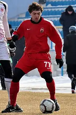 In summer 2020 he return to Desna Chernihiv and he made his debut in Ukrainian Premier League for the season 2020-21 in the match against Vorskla Poltava at the Stadion Yuri Gagarin.[7] On 31 January 2021, he played in the friendly match against PFC Lokomotiv Tashkent.[8][9] On 17 April 2021 he played against FC Mynai replacing Levan Arveladze at the 54 minute of the second half.[10][11][12] In summer 2021 his contract was ended with the club of Desna Chernihiv, becoming the club with most appearances in his career.[13][14]