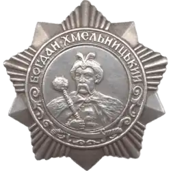 The Order of Bohdan Khmelnitsky (Russian: Орден Богдана Хмельницкого, romanized: Orden Bogdana Khmel'nitskogo, Ukrainian: Орден Богдана Хмельницького, romanized: Orden Bohdana Khmelʹnytsʹkoho) was a Soviet award named after Bohdan Khmelnytsky, Hetman (leader) of the Ukrainian Cossack Hetmanate. The award was first established on October 10, 1943, by the Presidium of Supreme Soviet of the USSR during World War II. It was the only Red Army award to be written in the Ukrainian language.