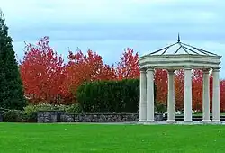 Orenco Station was developed on 209 acres (0.85 km2) in the east-central area of Hillsboro.[4] The master developer, Pacific Realty Associates (PacTrust), along with its residential partner Costa Pacific Homes, designed it to mimic older neighborhoods and be more pedestrian-friendly than traditional suburbs.[4] Zoning ordinances were changed to allow narrower streets, side-yard easements, garages on alleys, and measures to allow live-work homes, among other changes.[4] The development was a mixed-used neighborhood combining both retail and residential along the light rail line and in the middle of high-tech employers.[4] Residential options include apartments, single-family dwellings, condominiums, and town homes.[4] Orenco Station also contains a large park named Central Park located just north of the retail core, along with smaller parks spread throughout the development as a trade-off for smaller yards created by the smaller lot sizes in the development. Homes in the development are situated closer to the street than in traditional developments, and all were built with Category 5 cable installed in the dwellings.[4]
