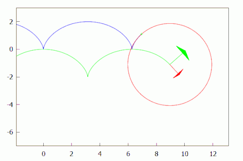 A cycloid with radius r can be parametrized as follows: