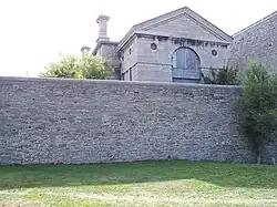 The Nicholas Street Gaol was the main jail of Ottawa for over a century. The structure was built in 1862 next door to the courthouse, and connected by a tunnel. Designed by Henry Horsey, the jail was the site of the hanging of Patrick J. Whelan on February 11, 1869, for the assassination of Thomas D'Arcy McGee. Over 5,000 people witnessed Whelan's hanging, which was a large number considering the size of Ottawa at the time.[5] Staff and guests have reported that Whelan's spirit is one of many that haunts the hostel and will appear at the end of guests' beds or in his death-row cell.[6][7] The third (official) and final execution at the jail took place on March 27, 1946, when Eugène Larment, who had killed an Ottawa police detective, was hanged. The building remained in use as a jail until 1972 when the outdated facility was closed. The original gallows, however, are intact and remain fully functional. While open, the jail inflicted very inhumane conditions upon those imprisoned there and modern day excavations of the property have revealed numerous unmarked graves.[8] Up to 150 prisoners, consisting of men, women, and children, would be forced to share 60 small cells (1x3 meters) and 30 larger cells (2x3 meters); as well as six solitary confinement units. Inmates included murderers, the mentally ill, or those incarcerated for minor infractions such as drunk and disorderly conduct.