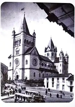 The current building is contemporary in design and replaced the previous Romanesque-Gothic style granite building,[3] which was demolished after a strong earthquake on July 30, 1962, caused it serious damage.[4]
