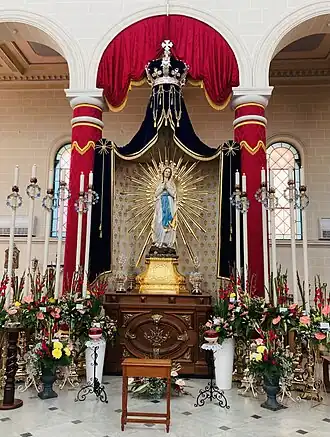 Our Lady of Lourdes Titular Statue decorated during the Feast Week in 2022