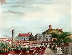 The Palace of the Grand Dukes of Lithuania[2] (Lithuanian: Lietuvos Didžiosios Kunigaikštystės valdovų rūmai Vilniaus žemutinėje pilyje; Polish: Zamek Dolny w Wilnie) is a palace in Vilnius, Lithuania. It was originally constructed in the 15th century for the rulers of the Grand Duchy of Lithuania and the future Kings of Poland. The palace, located in the lower castle of Vilnius, evolved over the years and prospered during the 16th and mid-17th centuries. For four centuries the palace was a political, administrative and cultural centre of the Polish–Lithuanian Commonwealth. It was demolished in 1801.