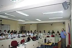 In July 2004, Mayor Lito Atienza spearheaded the development and implementation of the English Proficiency Program in all schools being funded by the city government. A committee on the use of English was formed a week after the directive was passed, headed by PLM President Benjamin Tayabas. A few weeks later, the English as a Second Language (ESL) Center was established at PLM[39] before the program's full implementation on September 1.[40] Initially, the city's campaign was derided by some critics and groups[41][42] but later lauded and even followed by other institutions.[43][42][44] Two years later, the American Chamber of Commerce in the Philippines and the European Chamber of Commerce in the Philippines began taking part in a massive English retooling effort among private and government schools in partnership with the Department of Education.[45]