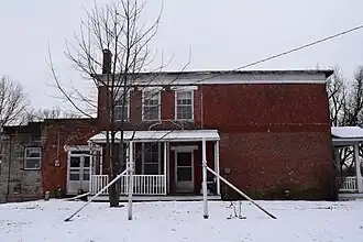 The Paris Male Academy is a Greek Revival style, two-story, three-bay, side passage plan, brick building with a rear addition, built in 1854. It has a front gable roof and four brick pilasters on the front facade. The building housed the Paris Male Academy until 1869, after which it became a private residence.[2]: 5