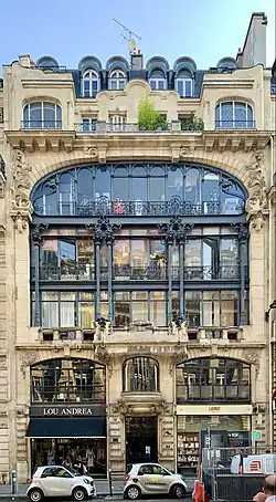 Art Nouveau became the most striking stylistic innovation of the period in architecture. It is associated particularly with the metro station entrances designed by Hector Guimard and a handful of buildings, including Guimard's Castel Béranger (1889) at 14 Rue La Fontaine and the Hôtel Mezzara (1910) in the 16th arrondissement.[40] The enthusiasm for Art Nouveau metro station entrances did not last long; in 1904 it was replaced at the Opéra metro station by a less exuberant "modern" style. Beginning in 1912, all the Guimard metro entrances were replaced with functional entrances without decoration.[41]